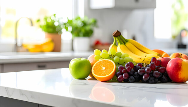 Buah segar di atas meja dapur