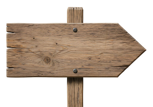 Old wooden directional sign isolated on transparent background, rustic navigation concept. Transparent PNG cutout