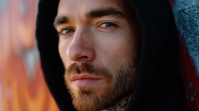a beautiful woman with a short hairstyle is leaning against a wall, gazing directly at the camera