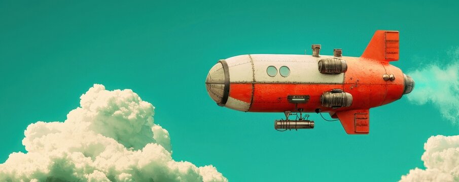 Red and White Dirigible Airship Flying Over Clouds