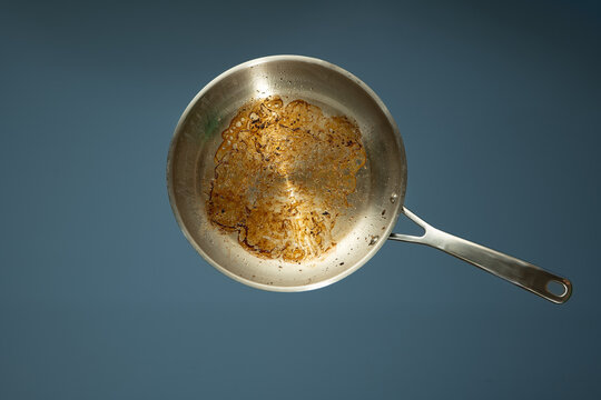 Dirty Nonstick Skillet Used to Make a Balsamic Reduction: An unwashed frying pan covered in a sticky glaze