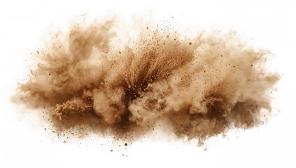 Side view of handsome serious man in effect of diffusion with fragments flying away on white background