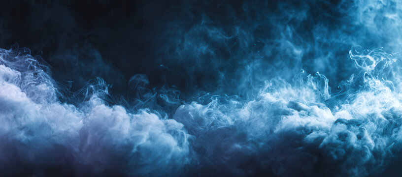 An asphalt road cuts through a dense forest, disappearing into a heavy fog. Tall trees line the path, creating a tunnel-like effect with somber atmospheric quality