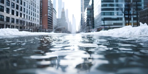 Desolate flooded street in abandoned town