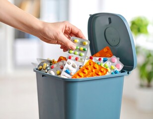 Hand of a business professional discarding crumpled paper into a metallic trash bin, symbolizing organization and productivity in a modern office environment with copy space