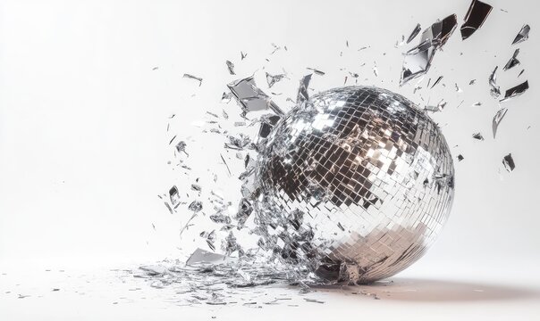A mirror ball with sunbeams on a photo studio cyclorama. Natural light with shadows. Space for text.