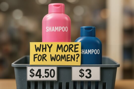 Gendered Price Discrepancy in Shampoo Costs Highlighted with Blue and Pink Bottles in Shopping Basket Display