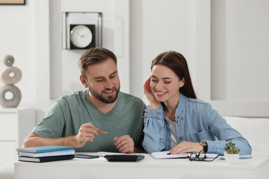 Couple teamwork budgeting finances at home
