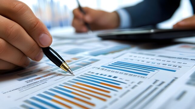 Dynamic business strategy with diverse colleagues analyzing reports