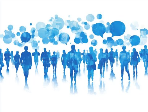 Abstract blue silhouettes with speech bubbles illustrating communication dynamics