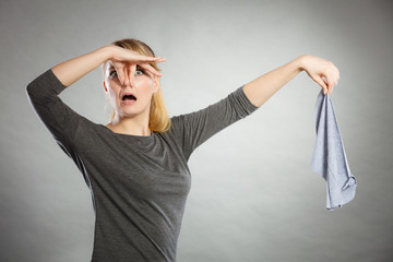 Girl with disgusting rag in hand.