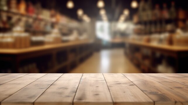 Wide Table top wooden bar on blurred beautiful beach scene background coconut leaf. Breakfast product display mockup outside vacation summer day time. Resort wood desk board on nature sea sand view.