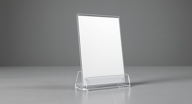 Transparent Acrylic Sign Holder Mockup with Blank Insert on a Minimalist Gray Studio Background