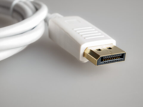 20-pin male DisplayPort gold plated connector for a flawless connection on a blue background