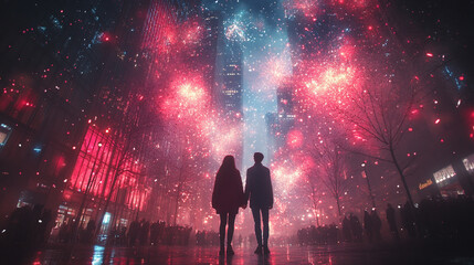 Sunlit urban flower stand with colorful shopping bags and stylish pedestrians walking