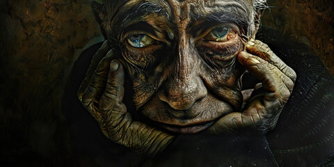 Portrait of pensive elderly man with intense expression