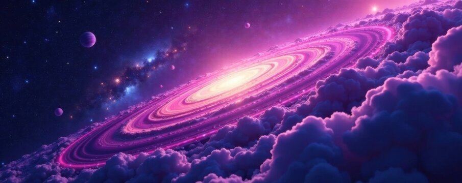 Imaginary planet floating in vibrant outer space