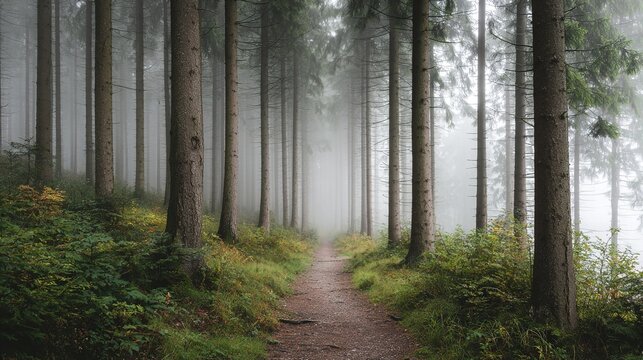 Solitary figure in misty meadow at dawn exuding mystical tranquility