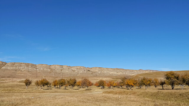 black and white, silhouette of distant trees and forest, clean and clear outline border line, seperated,