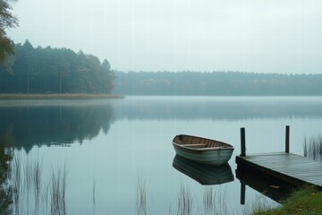 Golden-hued misty forest edge with skyscraper silhouettes at dawn