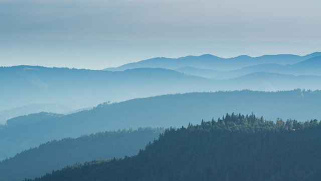 View from the Feldberg over hazy hills.