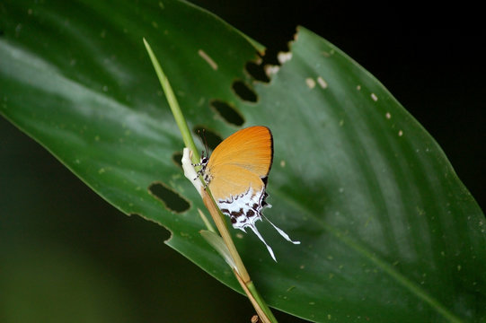 Orange Branded Imperial Butterfly on Leaf in Borneo