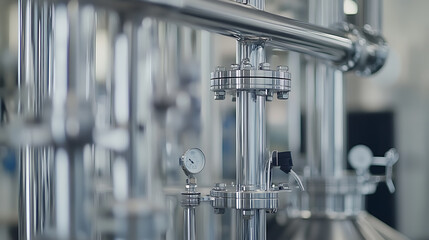 A chemical plant engineer overseeing a distillation column, with pipes and control valves in the background, Chemical plant scene