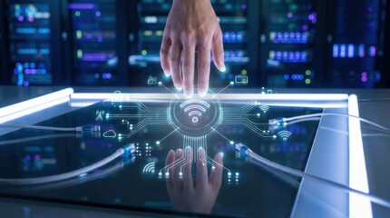 Abstract digital interface with interference patterns