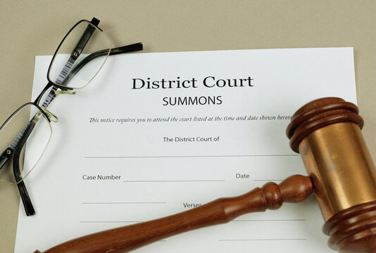 Summons Form for a District Court with gavel.
