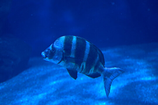 Black striped fish swimming in the ocean
