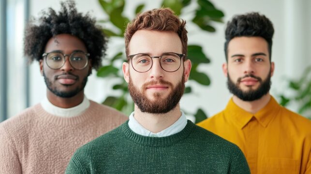 A team with diverse expertise collaborates on sustainable energy solutions, consulting on renewable energy ideas. Meetings promote green technologies in a modern, ecofriendly workplace