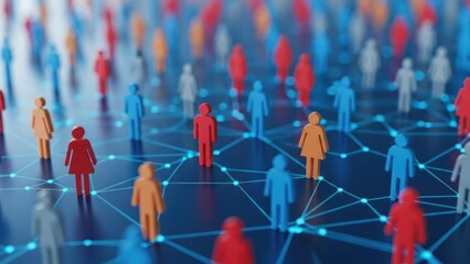 Colorful figures on a digital grid highlight diverse customer insights and the importance of personalized marketing strategies in a modern setting
