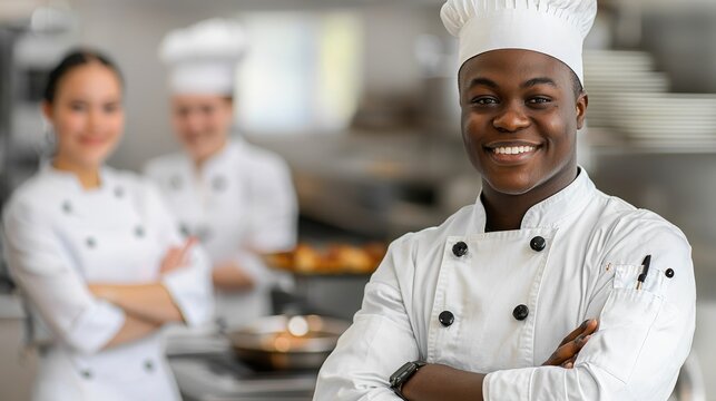 Culinary Team Portrait: A close-up shot showcases a diverse team of culinary professionals exuding confidence and skill, ready to deliver delectable dishes.