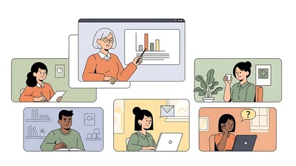 Remote team collaborating online with virtual presentation