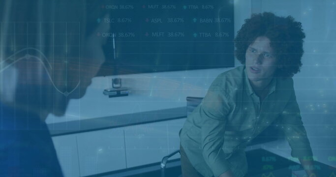 Diverse Professionals Collaborating With Financial Data Interface Images