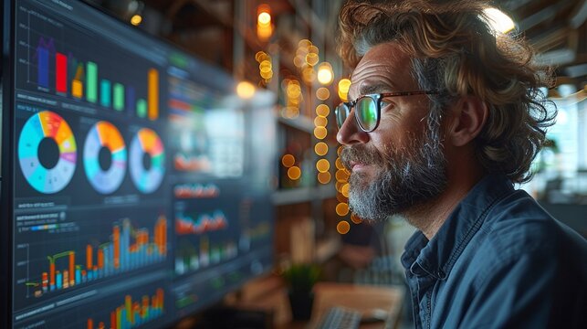 Diverse Professionals Collaborating With High Tech Data Visualizations Images