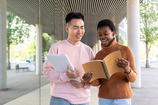 Diverse Students Sharing Knowledge On Tablet Images