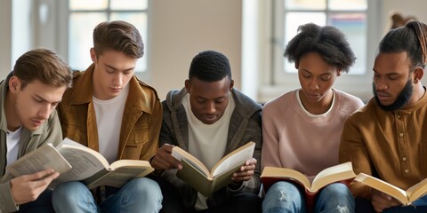 Diverse students focused on reading in classroom