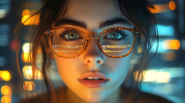 A diverse team collaborates in a modern office setting, utilizing technology for data analysis and communication through digital interfaces and graphical presentations. Trope