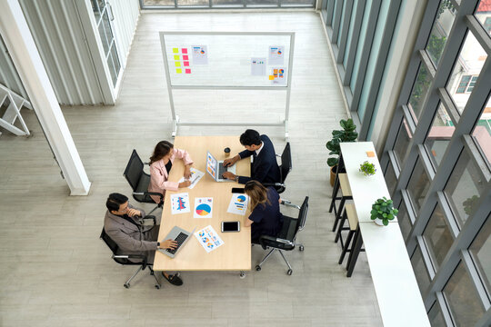 Diverse Team Brainstorming Business Strategies Around Glass Table Images