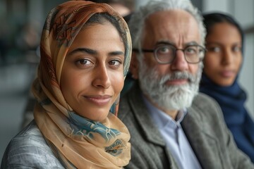 A diverse group of colleagues collaborating in a modern office setting, focused on project brainstorming. They are engaged in a lively discussion, working together and strategizing to meet deadlines.