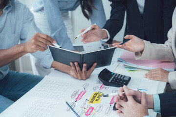 Business meeting with diverse team brainstorming in office