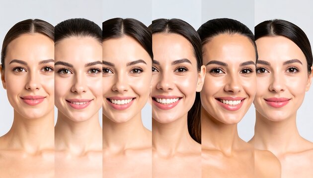 Diverse female faces closeup collage highlighting skin tones eyes texture and symmetry
