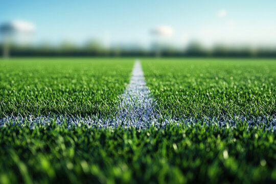 Green field with a white line in the center, dividing the vast landscape.