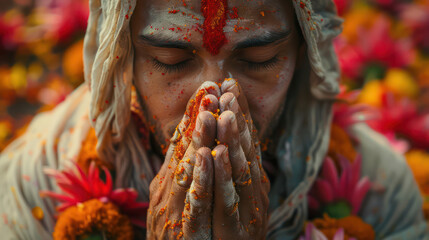 ancient wisdom priest as a man, meditating, filled with simple and sensual emotions. where we will encounter the beauty of divine creation