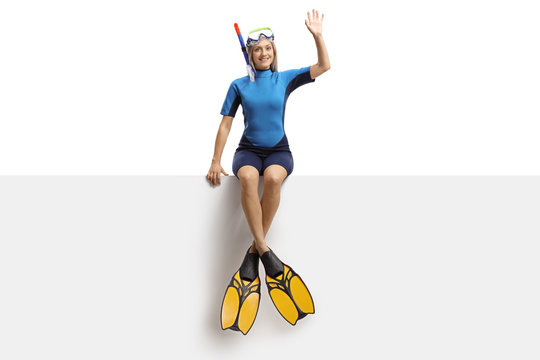 A diver wearing a mask and oxygen tank against a vibrant blue background, ready for underwater exploration.