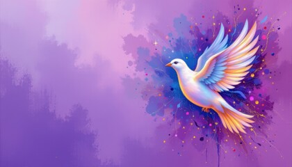 create an abstract art piece featuring a colorful painting of a dove as the subject on the right side of the image
