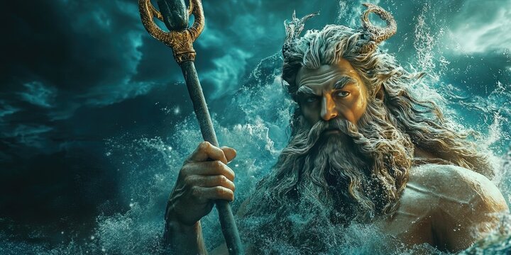 Majestic ancient roman god in contemplation against a striking backdrop, exuding power and wisdom