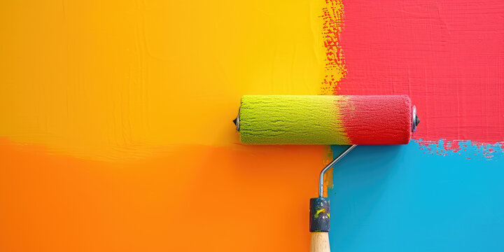 Low angle perspective of a Woman in shorts and ponytail painting a fence red