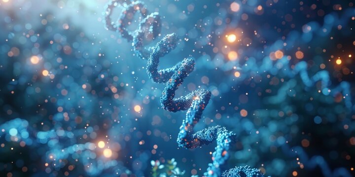 Abstract visualization of DNA double helix structure, representing genetic code and biotechnology